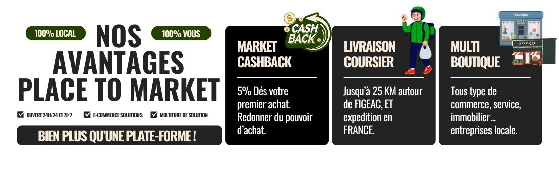 Place to Market est la marketplace qui met en relation les commerçants, artisans, restaurateurs et prestataires de services de votre territoire avec les habitants.
